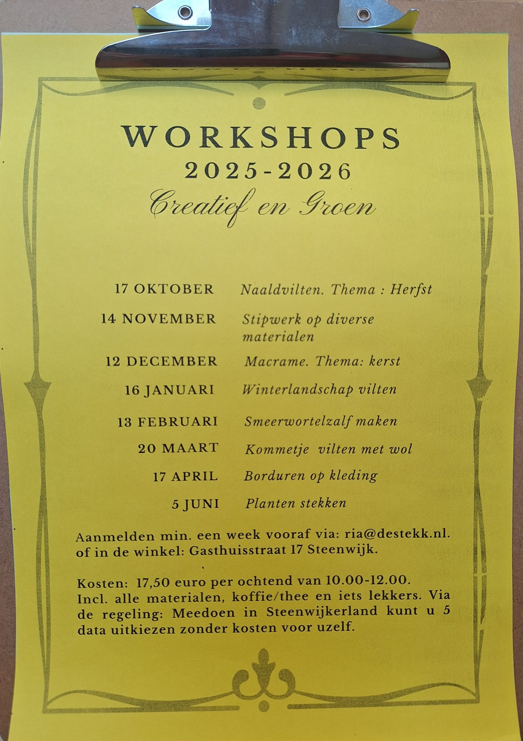 Van september 2024 tot mei 2025 staan diverse creatieve en groene ochtenden gepland. We hebben afspraken met de gemeente Steenwijkerland gemaakt om deze ochtenden voor iedereen toegankelijk te laten zijn. Via de regeling ‘Meedoen in Steenwijkerland’ kan vergoeding van de kosten worden gekregen.